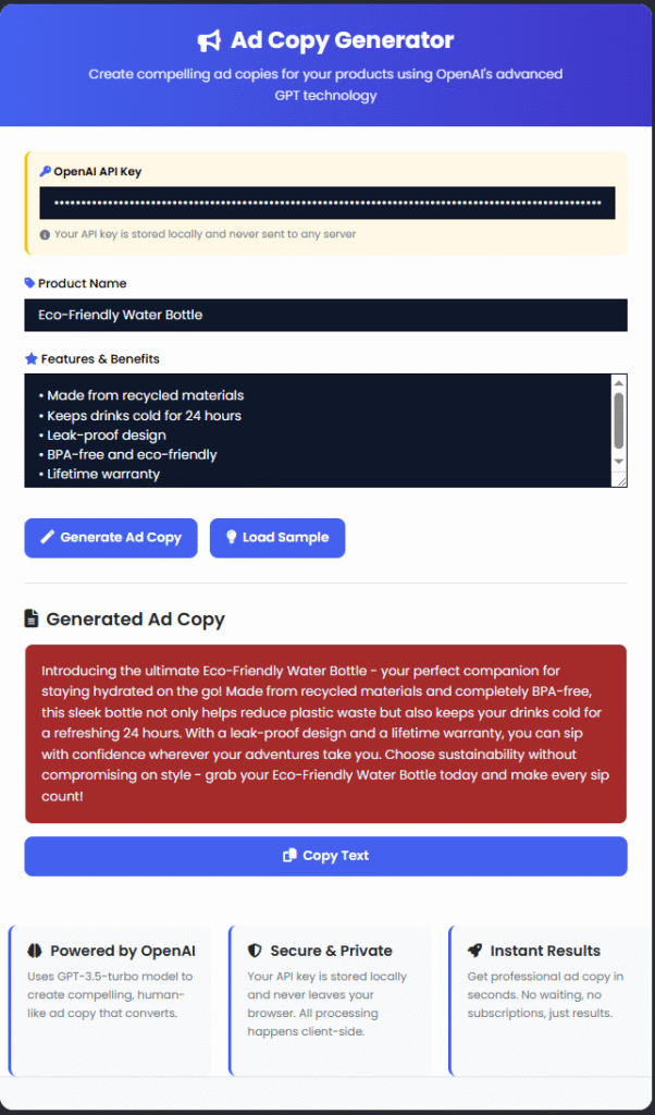 Create compelling ad copies for your products using OpenAI's advanced GPT technology